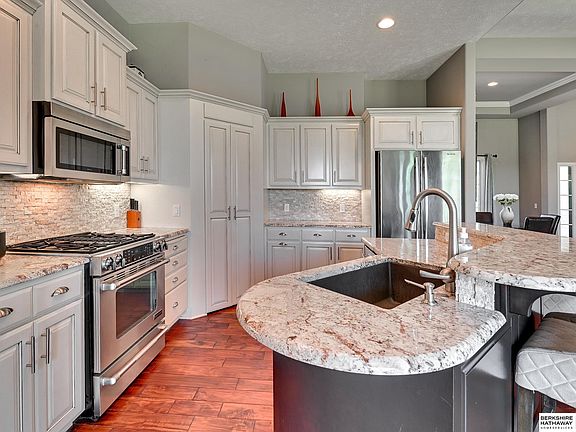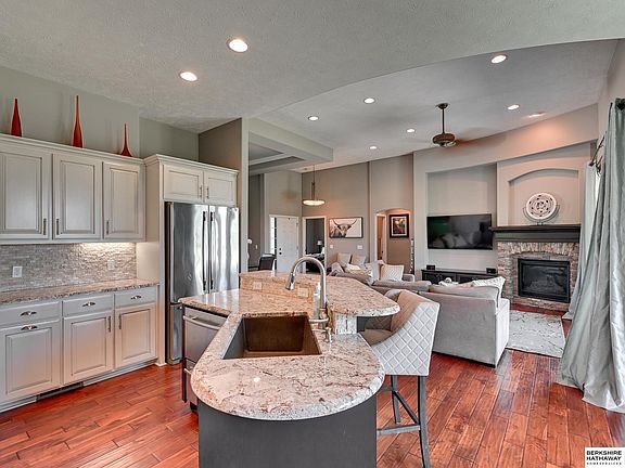 Just an ABSOLUTE GORGEOUS custom home to show! With a wonderful, unique floor plan that tucks the stairs in the rear of home, Offering more living space to enjoy on the main floor. You will just love the 12 ft. ceilings & light & bright living area w/full view of your PRIVATE, lush landscaped backyard. Hearth rm, beautiful liv. rm & FP & formal dining. Split bedrm plan w/Private Primary bedrm retreat & awesome walk in tile shower & private entrance to your patio.Beds 2 & 3 (or office) located on the "East wing". Lrg laundry & drop area combo. Enjoy cooking on your gas cook top in your updated kitchen-including Granite counters, SS appl, island & nice corner walk in pantry ! And if you enjoy movies, game nights & football, you will LOVE this basement!Huge full wetbar, tile FP, large liv. area, table/game area AND cool Theater Rm w/incredible surr.sound & lots of lounging space.Lower level offers an egress window & closet to customize & add an additional bedrm.