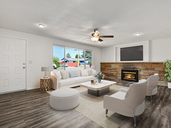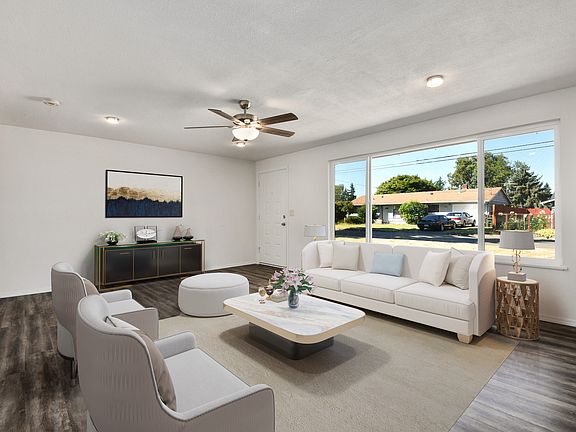 This renovated rambler has all of today's modern finishes. Brand new flooring throughout, interior/exterior paint, doors and windows. Beautiful kitchen with quartz counters, pantry, dining and eating bar area. All new recessed lighting illuminates the already bright open floor plan. Master with en suite and walk in shower. Full size Washer/Dryer has own utility room next to garage. Luscious mature landscaping adorns the large flat yard. Spacious storage shed for those gardening tools. Great location close to freeways and shopping.