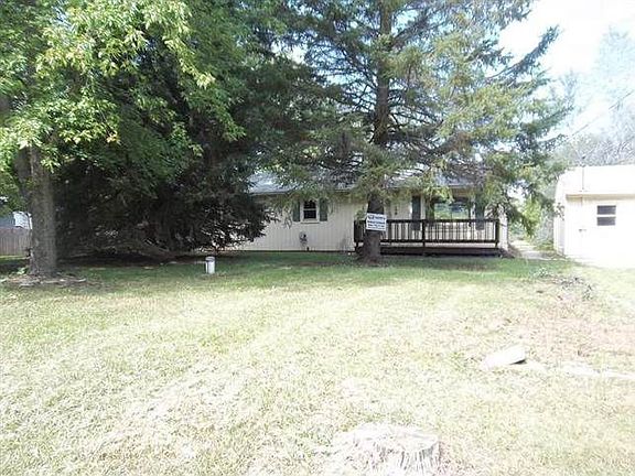 Exterior Features: Exterior: Wood siding, block foundation, windows intact. Soffits and eaves intact. Front porch and a back deck. Shingled roof, dirt driveway. Two-car detached garage. Home is in fair condition. Interior Features: Interior: This is a 3 bedroom, 1 bath home in the country. Large yard. Home has a living room and dining room. Kitchen with sink, range top only, and cupboards present. All flooring needs to be replaced. Basement with water softener, water heater and furnace present.