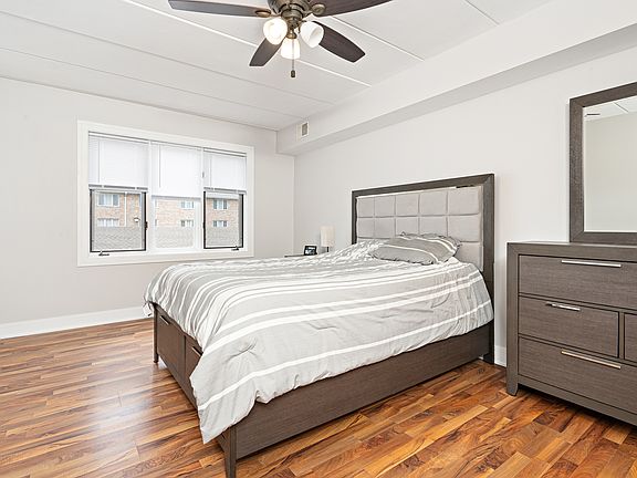Take a look at this rarely available and very well cared for condo. Flexicore construction and brick hallways. A very elegant and open floor plan. The kitchen features deluxe stainless steel appliances with a brand new island, an abundance of oak cabinetry along with a pantry and extra windows to allow warm sunlight. There's oak trim and doors thru out, new laminated flooring and plenty of closets. The master bedroom has a private bath and walk in closet. Relax on the huge balcony. Of course there's in unit laundry, w/d replaced in 2021. Absolute immaculate and priced to sell. Garage is very close to entrance and there's plenty of parking. Generous amount of cabinet space. Large closets. In-unit laundry, new island (2024), Furnace replaced 2014 and AC replaced 2022. Separate dining room for entertaining. Quiet halls that are neat and clean. Close to shopping, train, and 294 - great location. This layout feels more like a home than a condo!