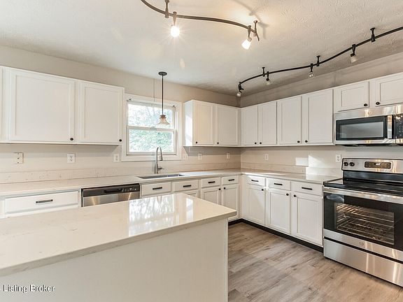 Listed for sale is this rare four bedroom home in Indian Falls subdivision in South Louisville convenient to I-65 and Gene Snyder. Home has been completely remodeled with fresh paint and lvp flooring throughout. Kitchen has quartz countertop, stainless appliances and updated fixtures throughout. First floor has half bathroom and walks out to expansive deck to back yard. Upstairs has four bedrooms with two full bathrooms. Basement has laundry and rec area. Home has two car garage, central HVAC with new condenser 2023 and fully fenced in backyard.
