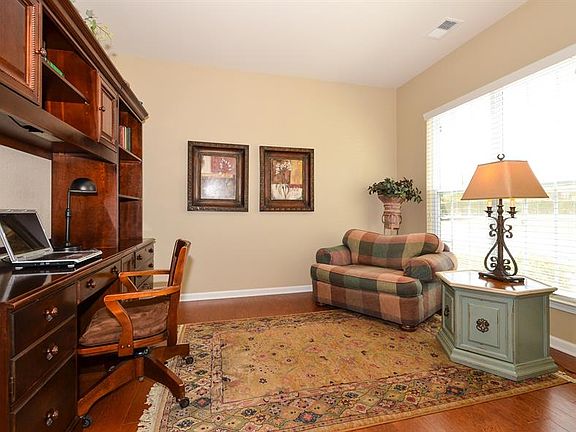 Feels like a single family home! 3 Bedroom, 2.5 Bath end unit townhome with lovely front porch. Hardwood floors through most of the main floor. Formal Living Room and Dining Room. Dining Room has trey ceilings. Gourmet kitchen open to the Great Room has stainless steel appliances, granite countertops, tile backsplash and gas cooking. The Great Room has vaulted ceilings and fireplace. The main level master bedroom has a trey ceiling and large bath with garden tub and walk-in shower. 2 large bedrooms are upstairs including one with private access to the full bath. Also on the second floor are a loft big enough for a pool table and an office with french doors. There is also a carpeted walk in storage area. The private backyard back to trees and has a large natural stone patio and fencing. Patio faces north which makes it a cool place to relax in the summer. This home also has a large side yard and good proximity to the community pool which can provide extra parking if needed. Home is also pre-wired for surround sound.