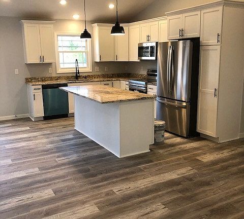 Three bedroom, two bath home with a Heat pump and vinyl siding. The home is complete with the exception of water and sewer lines being installed . Builder estimates completion by 4/1/23