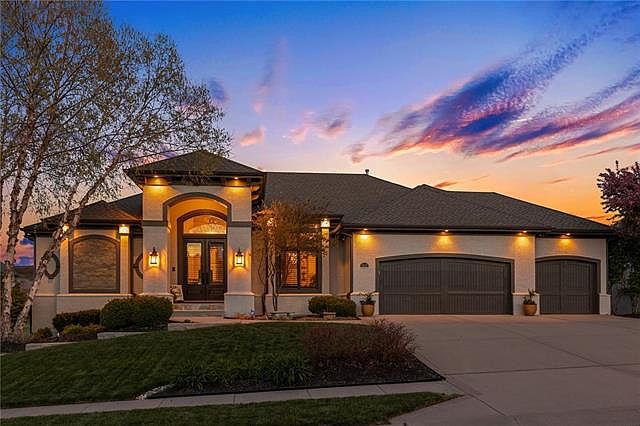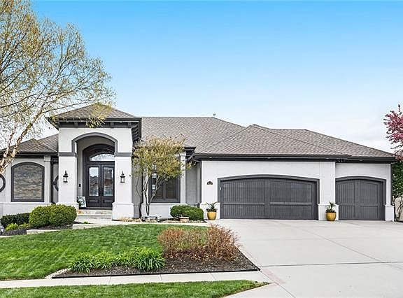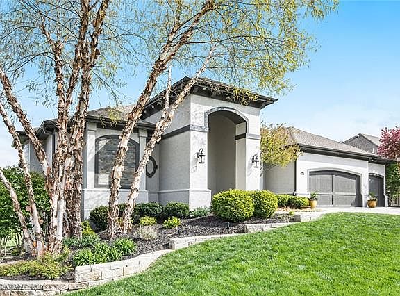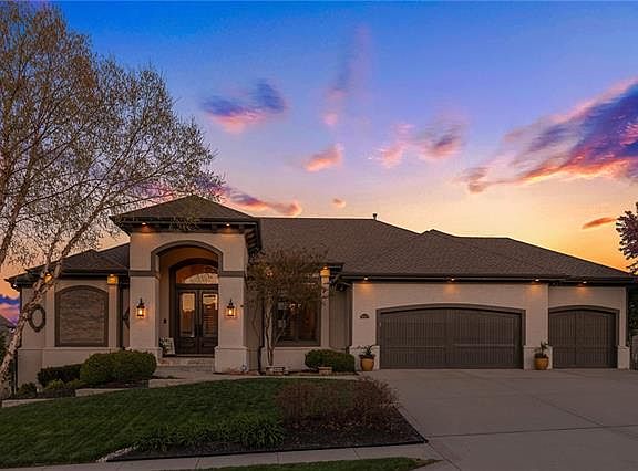 This home gets better at every point. First it is a gorgeous front elevation on a quiet cul de sac in the highly sought-after neighborhood of Staley Farms. Next, it has a completely unique interior that has been fabulously appointed and well-maintained. Then step outside on either the back deck, the covered lanai or the lower patio and overlook the 15th fairway golf views. This really is a slice of heaven. The interior has an open floor plan with high ceilings, 8-ft doors, gleaming hardwood floors, wooden plantation shutters and tons of built-in detailing throughout ; The kitchen features a custom hood, curved 2-tier granite island, granite apron sink, large Viking gas range with double oven, Monogram stainless steel appliances, Granite countertops, wine fridge ; Beautiful eat-in kitchen ; Relaxing covered lanai with a gas fireplace and ceiling fan ; Living room has a ceiling fan, stunning built-in with fireplace and lower cabinetry ; Owner's bedroom features a domed ceiling with a fan, wood accent wall and plenty of windows ; Spa-like bathroom with stunning marble counters, coffee station, custom arched shower entry, jetted tub and makeup station ; closet with bench and plenty of storage space ; Lower level boasts a fantastic curved granite wet bar with wine fridge, ice maker and microwave ; 3 bedrooms each with walk-in closet ; 2 bathrooms ; Living room that walks out to covered patio ; Suspended garage ; Large gated interior dog kennel with dog wash station and doggie door to backyard ; Newer HVAC system (2016) ; Roof (2014) ; Ring Camera security system ; Nest thermostat ; Staley Farms has the best amenities in the Northland with a zero-entry pool, workout facility, indoor basketball court, tennis and pickleball courts, playground, sand volleyball and walking trails. Staley is located in the award-winning NKC school district with the best schools around: Bell Prairie Elementary, New Mark Middle and Staley High Schools. This home is one that can't be missed.