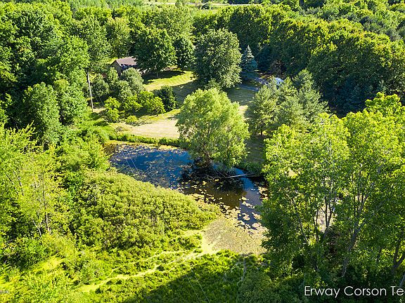 This spacious home sets nestled in the woods with spring fed pond with fish. Enjoy the deer, turkey and other wild life! Abundance of trees and privacy and the sounds of silence! Basement is partially finished with Family room, two bedrooms, laundry, and plumbed for 3rd bath with tons of storage. Spacious pole barn with cement floor 220 electric and water. Main floor features spacious Master suite with full bath off, and abundance of windows. This home is ready to get the key and move in.