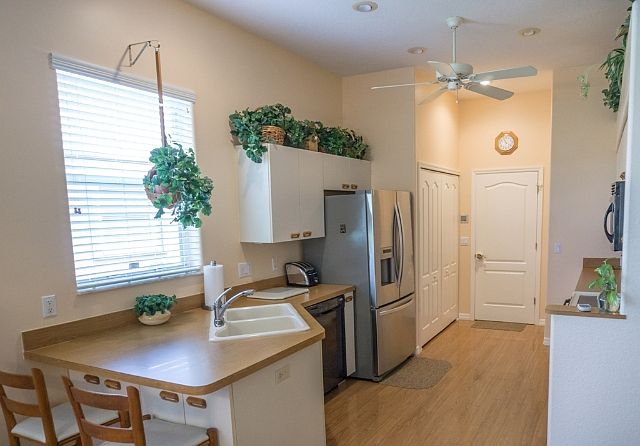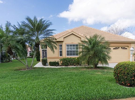 SELL THE LAWNMOWER!!! More time to smell the roses here! Elegant & roomy (1700+ sq ft), maintenance free, 3 bedroom, 2 bath, w/2 car attached garage home, that sits on the 14th hole of Seminole Lakes Golf course. The lushly landscaped yard invites you into your own tropical paradise. This home is in pristine condition with lots of space. Step into an open & bright Great room gathering space that offers an ideal living flow and perfect space for hosting a get-together with family and/or friends. The attractive kitchen features lots of cabinets for storage, a breakfast bar, plant shelves, and is also open to the gathering space so that the cook can share in the activity and conversation while preparing meals & snacks. Enjoy the sunshine coming through an abundance of windows in the living area to create a happy & cheerful mood. Walk out onto your enclosed lanai with the choice of screen or vinyl and enjoy your leisure time hours in a comfy chair w/your favorite beverage, visiting w/family & friends. Seminole Lakes feature resort style Amenities are: BBQ - Picnic, Bocce Court, Community Pool, Exercise Room, Golf Course, Putting Green, and Tennis Court.