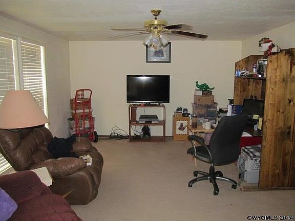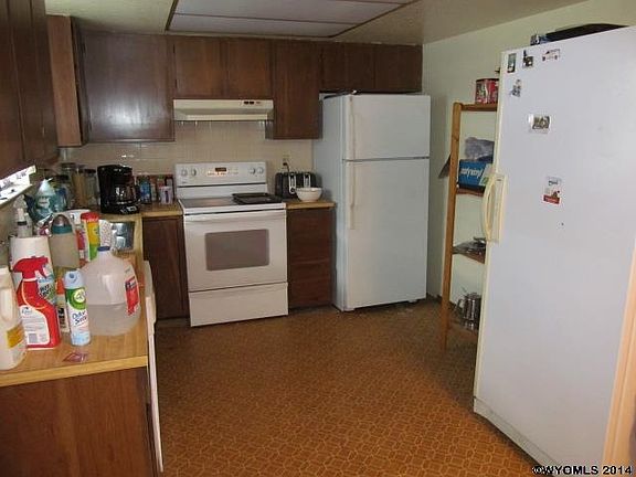 Great private deck with this home on the edge of Hanna, Wyoming. Large lot. Tongue & groove knotty pine in basement. Back yard completely fenced for pets & kids. Enclosed mud room. Plumbed third bathroom in basement. Two additional rooms in basement can be extra bedrooms, office or toy rooms. Family room. Community has a great rec center. Town is situated in an area that provides easy access to great hunting & fishing spots for the whole family to enjoy. BRING ANY OFFERS - SELLER VERY MOTIVATED.