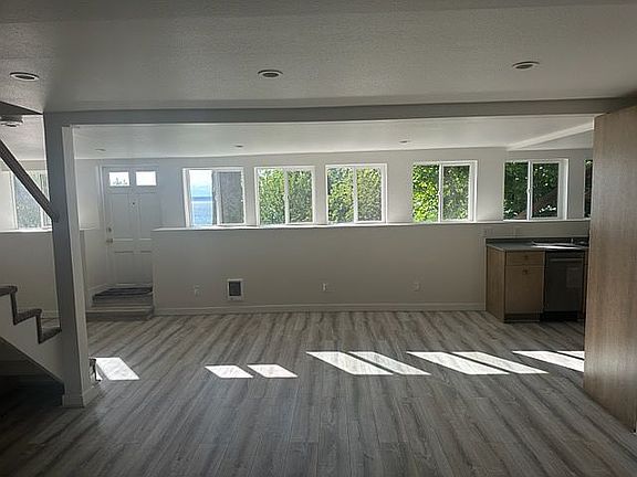 Alki/North Admiral unique, secluded home (off street) with view of Puget Sound and Olympics adjacent to City greenbelt, decks and large lawns at front and rear of house, significant landscape and abundant wildlife, including eagles, hawks, herons and otters. Main floor has living and dining room with new wood floors and wainsoting, multiple windows, wood-burning stove (plus centrally-controlled baseboard heating), fully-equipped kitchen with new induction range, bedroom with spacious walk-in closet containing washer/dryer and adjoining bathroom with 2-person jetted-tub and separate shower. Upstairs loft with skylight and closets can serve multiple purposes. Off-street parking for 3 cars. Just down the block is Hamilton Viewpoint park with sweeping views of city. Just down the hill by foot is Harbor Ave., walking/running/cycling path, scuba diving, kayak/paddle board spot, express bus service and Water Taxi (a 12-minute commute by boat to downtown, with views of the Seattle Skyline and Mt. Rainier enroute).