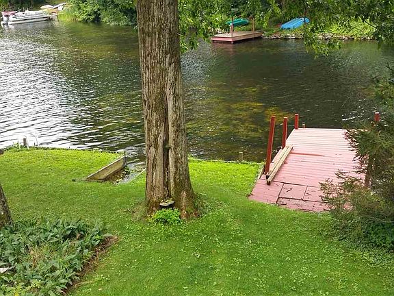 This peaceful GALWAY LAKE FRONT PROPERTY has a NEW SEPTIC System, Extra 1st floor living space can be easily turned into 1st floor master with minor modifications. Hardwood floors throughout, newer kitchen and Stainless Steel appliances. Lake views from almost every room. Fenced in yard. Newer roof and 3 car garage. 3 Car Garage is directly across the street with plenty of room for parking. Some of the lakes best fishing will be from your dock !! 1st floor is Handicap accessible (AKA Camp Ave on some GPS)