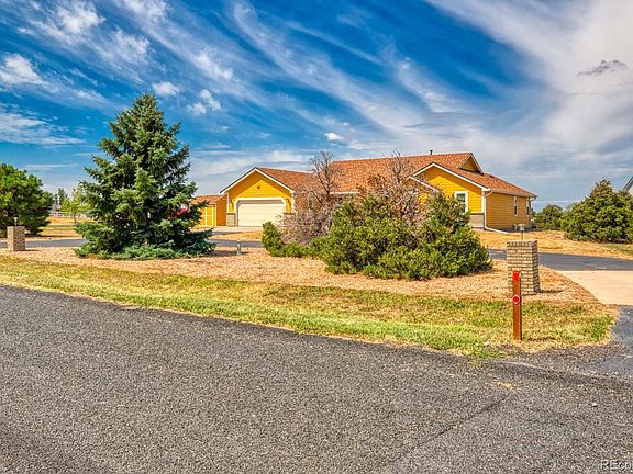 Need more space? This wonderful ranch plan home on 3 acres is calling you! Come out to Strasburg where life is simple and the sunsets are spectacular! This property offers all main-level living in a wonderful community with no HOA fees. This move-in ready home features lots of natural light, vaulted ceilings, eat-in kitchen with Center Island and lots of cabinet space, a cozy family room with gas fireplace, formal dining room, a large owner's suite with walk-in closet and attached full bath w/jetted tub, as well as two secondary bedrooms and shared full bath. There is also a powder room off the kitchen for your guests to use. The full unfinished basement is spacious and ready for your creativity! Outside you will enjoy the flat 3 acre lot with room for a large outbuilding (or two), horses, large garden, or whatever your imagination desires. Recent updates include new well pump, new water heater, new furnace and AC, and new carpeting. Enjoy an easy and stress-free daily commute to and from Denver with the sun glare behind you in both directions. Hurry and make this home YOURS before someone else does.