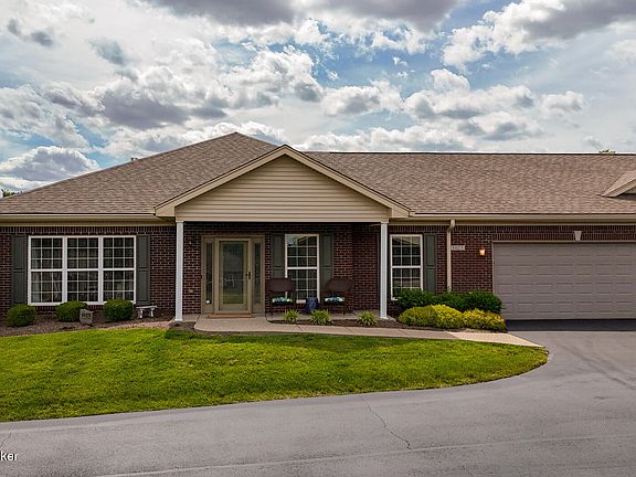 Beautifully maintained all-brick 2BR/2BA patio home featuring hardwood floors, dining room, and spacious living room with gas fireplace. Kitchen offers solid surface countertops, walk-in pantry, stainless appliances (fridge new in last 3 years), and new faucet. Large primary suite includes updated step-in shower and chair-height toilet. Enjoy the enclosed porch for year-round relaxation. Additional updates include new furnace, new A/C, new light fixtures, and more. Complete with laundry room and 2-car garage, this move-in ready home blends comfort, convenience, and style.