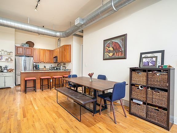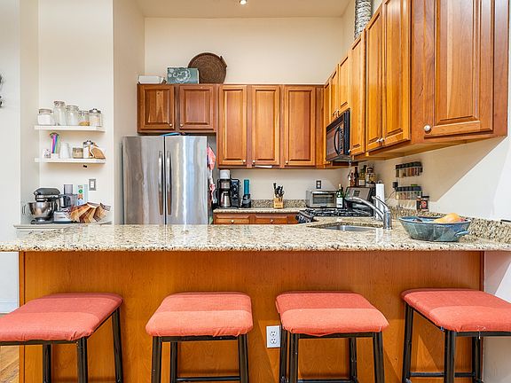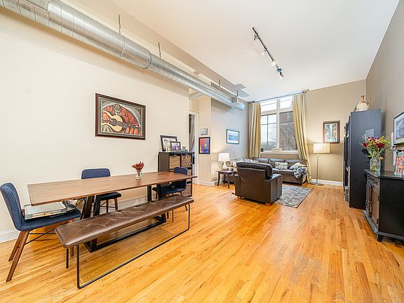 Fantastic 2 bed/2 bath loft style condo in an elevator building. Expansive living room/dining area with ample space for a separate dining area and office space. The kitchen offers plentiful cabinetry with stainless steel appliances, granite counters and breakfast bar. Both bedrooms are a good size with the primary bedroom complete with an en-suite bathroom. The 12 foot high ceilings give a light and airy feel throughout. Hardwood floors, central a/c and in home laundry. Additional storage in the building Covered garage parking included one block away. Common courtyard, with grills Great uptown location, across the street from Columbus park and the tennis courts, close to Trader Joes, all shopping and restaurants and one block to the bus to NYC.
