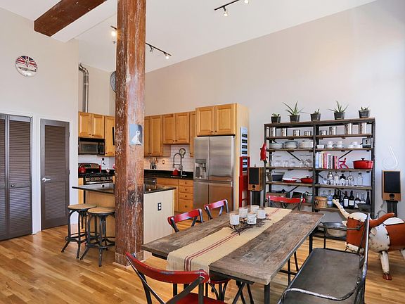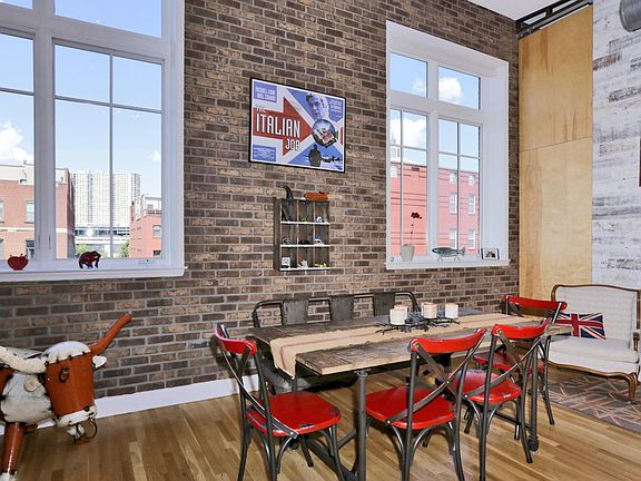 Open & airy loft style, 2 BR/2 BA condo in elevator building. Stunning 14 ft ceilings, partial exposed brick, oversized windows complete with Hunter Douglas custom shades through out, ceiling fans, original wood beams just a few of the charming design features in this unit. Completely open kitchen, dining and living room with tons of natural light. The spacious kitchen comes fully equipped with granite counters, center island with seating, stainless steel appliances and tons of cabinets. The master bedroom, has ample closet space and ensuite bathroom. Enjoy the convenience of your own parking spot in covered garage. Enjoy common patio area. Transportation to NYC right outside your door, Trader Joe's just around the corner. parks nearby and so much more.