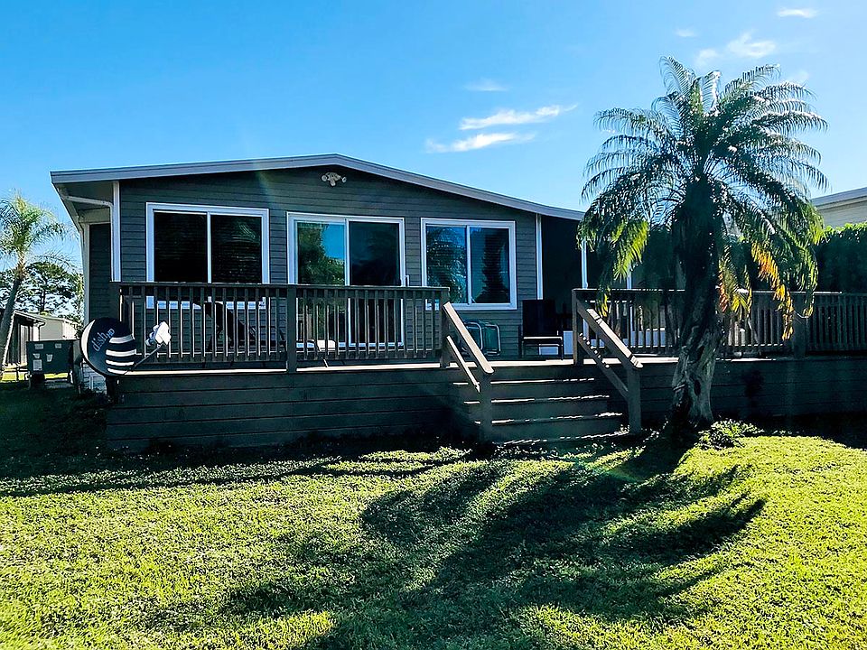 One Of The Nicest Locations in Our Community! Enjoy Relaxing Sunset Views On The Large 12X33 Lakeside Deck With Island And Long Lake Views. This Two Bedroom Two Full Bathroom Home Is Updated With New Central Air Conditioning, Water Heater And Updated Windows And Doors. Large 17X17 Ceramic Tile Throughout. Textured Walls And Ceilings. Kitchen Boasts Granite Countertops, Cherry Cabinetry and Stainless Steel Appliances With Huge Center Island. Make This Your Tropical Retreat Today!