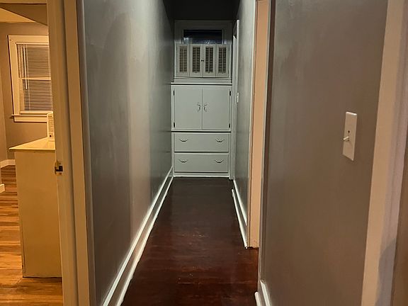 Imagine relaxing on the large, covered, front porch. Freshly painted with refinished hardwood floors in the living room, hall and bedrooms, new LVT flooring in the kitchen. Huge master bedroom with walk in closet and large second bedroom. Lots of cabinets in the kitchen. Central heat and air. Tenant pays electric and gas. We pay water and trash. Unfinished basement with washer/dryer hookups. Off street parking, no pets, main floor if duplex. Rent $750, deposit $750. Close to ESU or downtown.