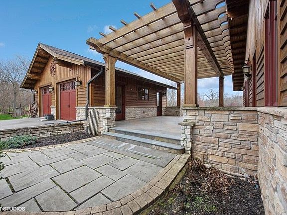 Welcome home to this stunning, exceptionally constructed custom American Craftsman style RANCH on 2+ acres. Nestled on a secluded cul-de-sac in highly desirable Jackson Township. Many views of mature trees and 1-acre stocked, aerated pond. Exterior of stone, Cyprus siding, exposed timbers. Radiant floor heat under white oak and stone floors throughout the home, including basement and garage! Craftsman details through entire home with custom-made quarter-sawn cabinets, doors and trim. Welcoming front porch, tiled with Brazilian slate. Impressive 20'x12' foyer with coffered ceiling and oversized coat closet. Soaring 20' beamed cathedral ceiling great room, floor to ceiling stone fireplace flanked by built-ins and a wall of windows overlooking sunroom and pond. There's even an airy loft tucked behind the 2-story fireplace. Enclosed sunroom features 2 skylights and Brazilian slate floor. Dining room features 11' coffered ceiling, built-in buffet and lighted glass cabinets. Kitchen design includes skylight, island, plenty of soapstone counters, cabinets and pantry with pullout shelves, and 6'-wide side-by-side refrigerator/freezer. All the appliances have custom wood fronts, for that luxury feel. There is even a pass-through to the sunroom. Outside the kitchen and dining room is a 19'x21' veranda with timber pergola, perfect for grilling and dining. Office/Craft room boasts counters, storage and work island. Descend to the 2300 sf family room via a grand open staircase. Basement family room boasts 9' ceilings, Nashua wood burning stove and lovely built-in cabinetry. Connected to the family room is a 1000 sf basement workshop with its own overhead garage door entry, daylight windows, triple sink, tons of outlets, plus an interior staircase up to the garage. The shop space is ready for a car collection or dream hobby. Don't miss the rare opportunity to own a unique property that offers a rare blend of luxury and nature.