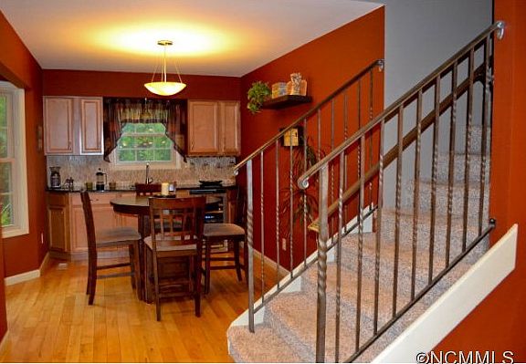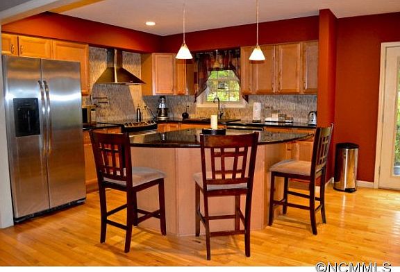 This Classy home is located in the Deepwoods Subdivision and sits on a large lot which Adjoins Pisgah National Forest and sits below the picturesque Bald Mountain. This 4 bedroom, 2.5 bath home sits amidst an exquisitely landscaped lawn from front to back yard. Main level features an Open and Spacious Living room, an Oversized kitchen with Granite Countertops and a custom built Wine & Coffee bar behind the Dining Room.