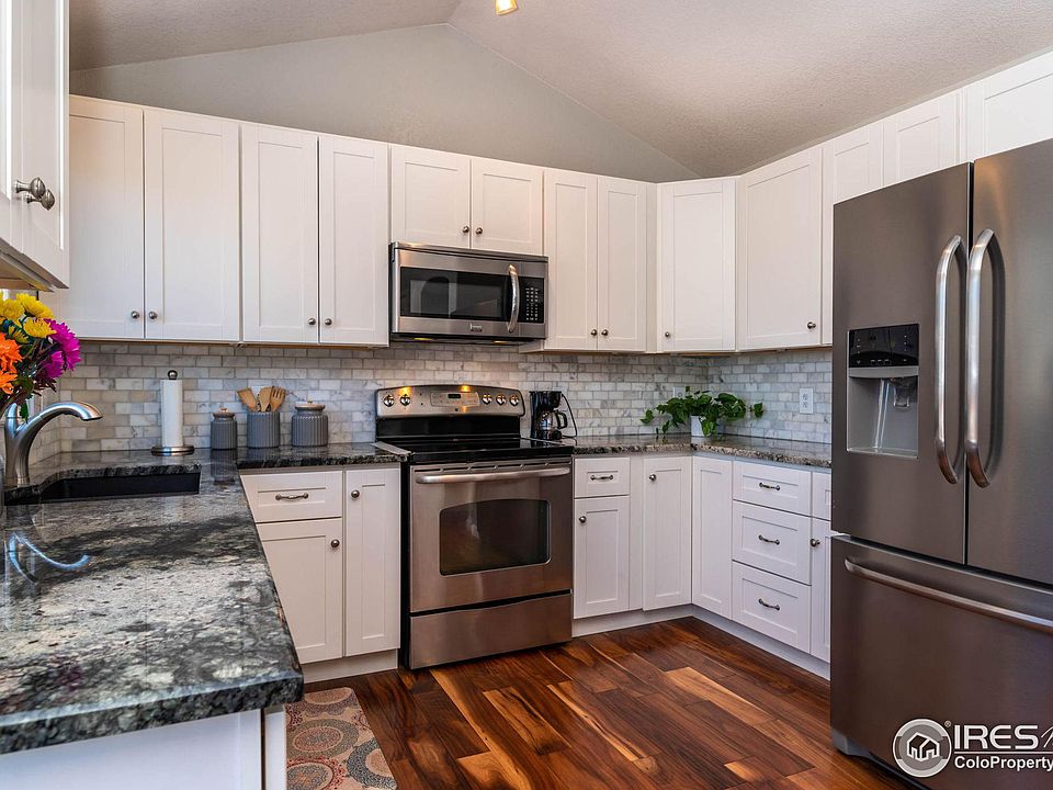 Welcome Home to this attractive & affordable 2-story in desirable Whispering Meadows convenient to shopping, restaurants, top-rated schools, trails & easy access to Charming Old Town Lafayette, Boulder or Denver. The delightful interior offers a comfortable living/dining area, family room with gas fireplace & many tasteful updates including a light & bright kitchen with white cabinetry, slab granite countertops, marble backsplash, stainless appliances & extensive main floor wood flooring. 3 bedrooms on the upper floor including the primary suite with an updated bath, 2 sinks & generous sized walk-in shower. 2 additional bedrooms on the upper floor with an updated full bath. Room to spread out in the finished basement with bonus/rec room, 4th bedroom with 3/4 bath and a huge unfinished storage space. Relax on the large back deck with fenced yard & no homes behind you. Recent improvements include new furnace & AC (2021), exterior paint (2022), basement interior paint (2023) & low electric bills from the leased but PAID IN FULL solar panels.