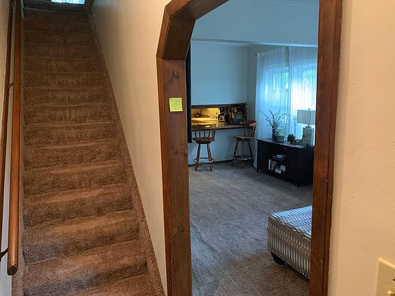 two bedrooms with fresh paint and newer carpet, new open kitchen and large living/ dinning room. upstairs is the two beds and one bath. You have a nice back yard with large back deck. two car garage included. laundry in unit. large storage area in basement. owner pays water and garbage. tenant pays for gas for heat and water heater and electric.