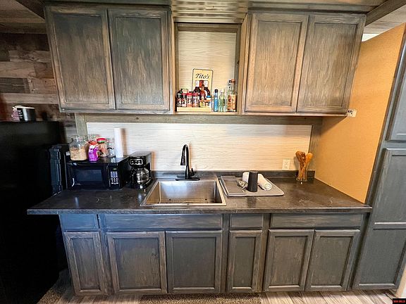 Discover the perfect blend of comfort and convenience. Easy living in this adorable 1 bedroom, 1 bath, kitchenette area, and living room space. 12X32 building located in Oak Tree Park in Mountain Home. Great front porch for morning coffee. $300/month- Includes lot rent, water, sewer, trash and lawn care. This unit was purchased bare 3-4 years ago and is mostly completed for you to enjoy! Great location and hassle-free living, don’t miss the opportunity to make this charming place your own. Sold “As Is.”