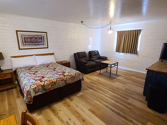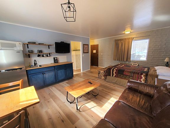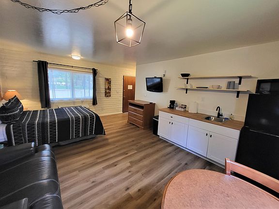 Clean Quiet Furnished Studio. Month to Month rental. Perfect for travel nurse, travel contractor or if you just moved here and you are house hunting. Large studios include all utilities and internet, AC/Heat, queen bed, seating and units are equipped with Kitchenette's. Big fridge, microwave and basic utensils and dishes. Bring your air fryer/cook plate. No Linens are provided. Great Yard area, outside BBQ's and seating areas with firepits. Walk to the lake or local coffee shops. This is a wonderful little community. Must be employed (or retired) and show sufficient income to qualify. NO CRIMANL RECORD or EVICTIONS. MAXIMUM of 2 Person occupancy. Pet friendly rooms are sometimes available with pet fee. Sec Deposit of 750.00 and refunded day of move out. This is a very quiet community and partiers, illegal drugs and/or heavy drinkers are not wanted. Month to Month- no leases