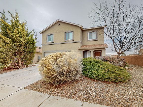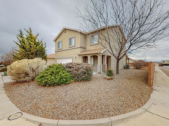 Beautiful home in suburbs of Rio Rancho perfectly positioned on a corner lot!! This property has low maintenance landscaping designed to highlight the charm of the southwest. The home has 4 bedrooms and an office space! Plus a living room and upstairs loft to entertain guests. Kitchen has stainless steal appliances, gas stove, granite counter tops and dark wood cabinets. Tile and carpeted flooring throughout. Lots of space in the back & side yards. Find shade this summer with the extra large covered patio and landscaped trees. This home will go FAST, schedule your showing today!