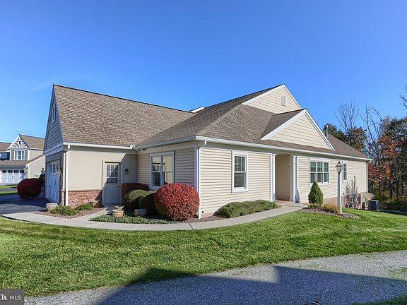 Tranquility awaits at 1023 English Drive in the charming 55+ community, Alden Place at Cornwall. Say goodbye to lawn cutting and snow removal. They are taken care of for you here on English Drive. This home has approximately 3,250 square feet of combined living space in the main level and beautifully finished walk-out lower level. Upon entry, just past the foyer you will see the home is graced with an oversized living room (23x19) and formal dining area. It’s flooded with natural sunlight that highlights the gas fireplace and high ceiling. The kitchen features warm tones, plenty of cabinetry and counter-space, a breakfast bar, and recessed lighting. Enjoy Sunday morning pancakes while you take in the tree line view, as you watch the seasons change through the patio doors just ahead of you. A few steps away you’ll find a roof covered 10x14 composite deck. A relaxing place to gather with guests. The primary bedroom is a bright and spacious sanctuary with walk-in closet, primary bath featuring dual vanity, center makeup station, and step in shower with glass doors. The other side of the home holds the guest bedroom with double closets, full guest bath, and laundry room. The walk-out lower level will be a haven for entertainers. This space was professionally finished in 2016. There you will find a family room, art studio/flex space, 3rd bedroom, 3rd full bath, an office, and lastly a storage room showing the Superior wall system. Quality Andersen windows & Hunter Douglas blinds throughout the home. Please note: room dimensions of the lower level family room and art studio/flex space are estimated. Alden Place is a 55+ land lease community. The monthly land lease for the next owner starts at $562.77 land lease + $26.00 HOA fee ($588.77 total). This is a “VILLA” style home, so the land lease includes: lawn trimming, snow removal, trash collection, land taxes, street lights, and street light maintenance. Enjoy an array of amenities and a vibrant social scene at The Alden Clubhouse! Indoor pool, hot tub, fitness room, billiards, coffee shop, beauty salon, and more. Residents can join the clubhouse for $25 per month. Sign up for water aerobics, yoga, Zumba, pool volleyball, bridge, fantasy baseball club, game clubs, travel club, trivia night, wine events, concerts, 60+ person choir, something for everyone. Schedule your showing of 1023 English Drive today! When you visit, take a walk around the neighborhood, talk with the residents, they are the best community ambassadors. Take a look at the lake, the clubhouse, and drive up and explore the Rail Trail path at the end of Alden Way. Say yes to a whole new way of life, here at Alden Place.