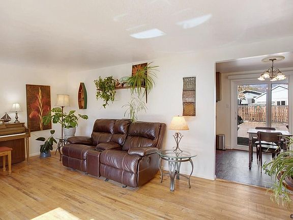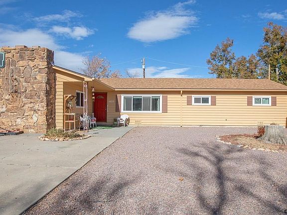 This 1536 sq ft 3 bedroom, 1.5 bath 1961 ranch home was solidly built, has been well maintained, and is now ready for you to make your own! Nestled on a quiet street in the heart of Canon City, Colorado, this home is conveniently located close to schools, hospital, parks, and shopping! Step inside and feel the warm welcome of the original hardwood floors in the living room and bedrooms, and the updated vinyl flooring in the kitchen and bathrooms, along with double-pane vinyl windows throughout. Full bathroom has been recently remodeled with tile bathtub surround and stylish sink/vanity. Cozy up to the beautiful-moss rocked fireplace in the recessed family room, with custom sliding barn door adding more character and charm. Large bonus room with laundry closet could be used as formal dining, office, or den, and galley kitchen includes built-in oven, electric stovetop, and refrigerator. Window-mount swamp cooler is also included. New roof and electrical panel, along with forced air gas furnace installed in 2022! Nicely-sized .19 acre lot features a privacy-fenced backyard with xeriscaping, garden beds, apple tree, and a large shed for storage. Do not miss this incredible value, this home is going to look good on you!