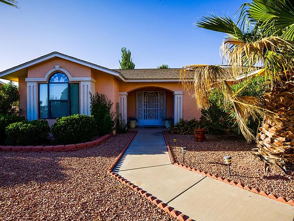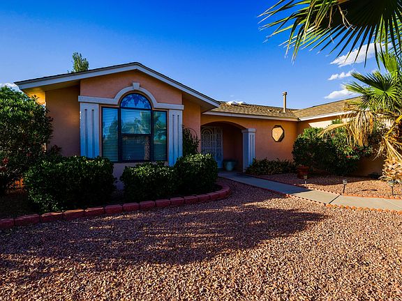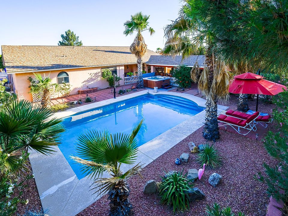 Dreading those hot summer days? Well, dread no more! This house offers a serene backyard with an inviting swimming pool and hot tub! It is surrounded by palm trees and beautiful plants, a covered entertaining patio and a soothing water fountain! Inside there is 1708 square feet of living, 3 bedrooms and 1.75 baths. The master bath is another spa like feature. A very spacious walk-in shower, double sinks and a separate toilet area. This house is located in the Elks area and has been very well taken care of! New roof and exterior painting was done in 2017, along with refrigerated air! Laminate floors are throughout the house except in bedrooms, which has tile and much more! This house is a must see!