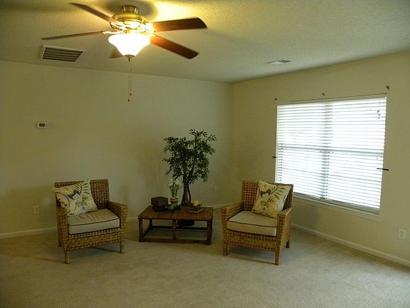 This lovely home offers lots of charm with a welcoming front porch and landscaped yard. Upon entering the home, you're immediately greeted into the spacious family room which displays a cozy fireplace with spacious shelf area (perfect space for your TV) a sizable coat closet and an upgraded ceiling fan. Separate dining room is open to the family room and kitchen. Bright spacious kitchen offers lots of cabinets, nice appliances (including refrigerator) and an eat-in kitchen area. The laundry room is conveniently located off kitchen as well as a powder room. The large master suite is located upstairs ~ it features a huge walk-in closet, upgraded ceiling fan and master bath has a garden tub, separate shower and vanity with dual sinks. The other 3 bedrooms are spacious with walk-in closets are located upstairs as well as a LOFT ~ great media space for you & your guests and a guest bath with spacious linen closet close-by. Ceiling fans are featured in all bedrooms as well as blinds throughout. This well cared-for property is centrally located to all the conveniences of Summerville/Ladson areas...Restaurants, shopping, schools, hospital, doctor offices etc... Home is move-in ready!!