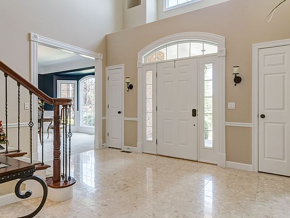 Impressive brick & stone 2 story home nestled on a beautifully landscaped private lot. Home features a 2 story entryway w/crown molding, 2 coat closets & marble flooring. Great room boasts hardwood flooring, built in bookcases, wet bar & large windows. Entertaining will be a breeze in the large eat in kitchen w/granite countertops, newer stainless steel appliances, double oven and 5 burner gas range. Kitchen adjoins to sunroom w/ vaulted ceilings & windows over looking deck , impressive pool & hot tub. Master suite is stunning w/ coffered ceilings, organized custom walk in closet, linen closet, luxurious master bath with raised vanities, dressing table, and separate tub & shower. 3 additional bedrooms in the upper level one with private bath the other two feature jack and jill bath. 2nd floor bonus room! Whole home wired for surround sound/stereo system! L ower level media room with coffered ceilings surround sound & built in cabinets, game room, wet bar and half bath.