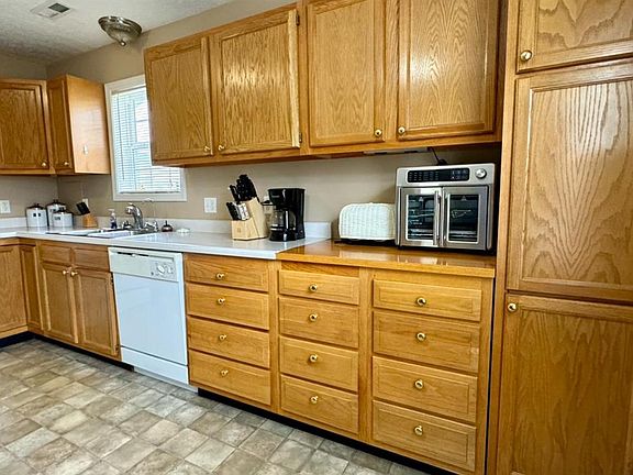 Clean move in ready, easy maintainable home, all on one level. This home offers three bedrooms, 2 full baths, laundry room and large kitchen. Outside you will find a covered front porch, out back there is a large carport and storage building with ramp to the back door entrance