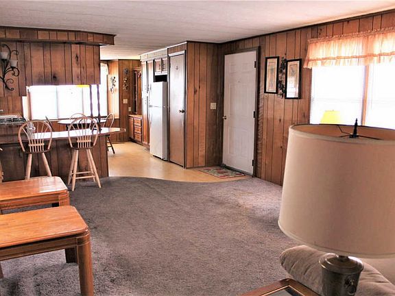 2-bedroom mobile home. Covered front porch and rear carport parking with ramp for wheelchair access, gas furnace, central air conditioning, spacious kitchen, and large bedrooms. Bathroom has newly renovated step-in shower. Stove & Refrigerator will remain. This is a 55+ community ask for details! Lot rent is $321/month. See A2A remarks.