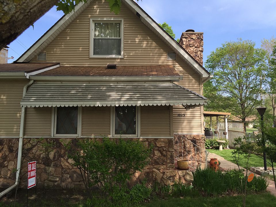 It's 3 bedrooms with back room that can be used as a 4th bedroom, 1 bathroom, built on furnace room, wood burning fire place. 2.5 detached garage on adjacent lot.