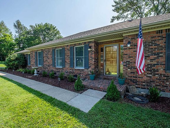 Check out this Lawrenceburg KY home. This is the home you have been waiting for! This brick ranch features beautiful decor, fresh paint, hardwood floors. Very open floor plan, for flexible sage. Wood burning fireplace, large dining room. Gutter guards. Sitting on a spacious 2.5 acre lot, partially fenced. Three Bedrooms, 2 full baths, over sized 2 car attached garage. Partial basement with a garage door for lawn equipment, storage and features a work bench.