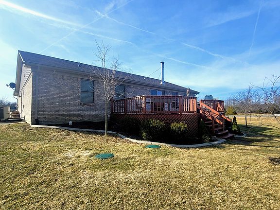 Welcome to this beautiful 3-bedroom, 2-bathroom brick ranch home, offering a perfect blend of comfort and modern living. The open concept layout seamlessly connects the kitchen, dining, and living areas with Luxe vinyl plank flooring, creating an ideal space for both relaxation and entertaining. The kitchen features a large center island and sleek black stainless steel appliances. The primary bedroom boasts a walk-in closet, while the primary bathroom includes walk-in shower. A separate utility room adds convenience and functionality. The finished garage is complete with an epoxy-coated floor, utility sink, and plenty of space for storage or projects. The well-maintained concrete driveway offers ample parking. Enjoy the serene outdoor spaces with a covered front porch and a back deck overlooking a pond. Take a leisurely stroll down to the dock and enjoy the pond that is perfect for fishing or simply unwind by the water. In addition you have access to a 70 acre lake exclusive for homeowners. Located just minutes from town, this home combines the tranquility of rural living with the convenience of nearby amenities. Don't miss the opportunity to make this stunning home yours!