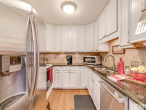 WELL MAINTAINED TOWNHOME, GREAT LOCATION! Quiet neighborhood just steps from Lake Johnson, close to NCSU, 440 & I-40! Open floorplan with updated kitchen with fresh white cabinets, tile backsplash & granite counter tops. Hardwood flooring in foyer/hall, family room, dining room, & kitchen. Wood burning fireplace in living room. New carpet throughout. 1st floor bedroom & full bath! Large master bedroom with vaulted ceiling & sitting/reading area & updated master bath with custom tiled shower & sep tub.