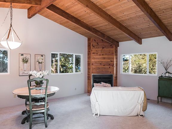 A new point of view sits up on its 6500 sq. ft. lot. The sunsets are breathtaking. This two bedroom, two bath, 789 sq. ft. home with vaulted ceilings, fireplace, dual pane windows, fresh paint and carpeting . one car garage two story house. Decks on both sides of the home offer outdoor spaces to relax and commune with nature.