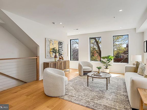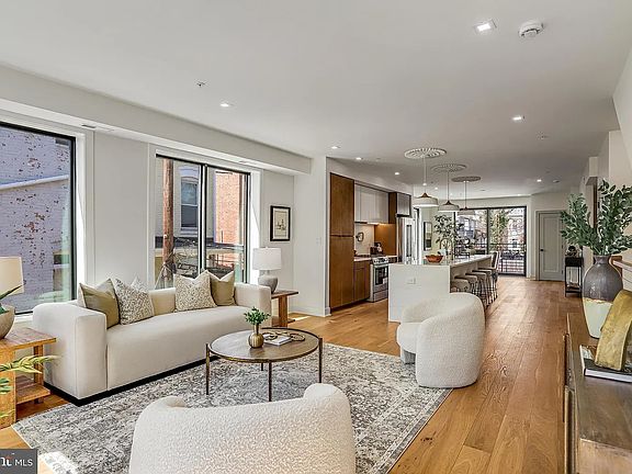 A thoughtfully crafted Penthouse with elevated finishes and superior workmanship, this 3-bedroom, 3.5-bath residence offers an expansive rooftop terrace with iconic views of the Capitol and Washington Monument, and the convenience of private front entrance and rear entrance, which gives access to the dedicated EV-ready parking. The main level boasts a sunlit open floor plan centered around a show-stopping chef's kitchen with a 12-foot island, Bosch appliances, sleek custom cabinetry, and striking brass and quartz details - perfect for both everyday living and entertaining. Wide-plank white oak floors and oversized Pella windows bring warmth and light into every corner. A stylish powder room and generous living and dining areas complete the main level. Upstairs, you'll find three beautifully appointed bedrooms, each with its own ensuite bath, showcasing elegant Italian tile and modern fixtures. A cozy balcony provides a quiet nook for reading or relaxing, and gives access to the staircase that leads to the private rooftop deck, fully equipped with gas and water hookups - ideal for al fresco dining or evening cocktails. Located just blocks from beloved community favorites like St. Vincent Wine, The Midlands Beer Garden, Hook Hall, The Coupe Cafe, Howard University, nearby parks and just two blocks to the Columbia Heights Metro, this home pairs timeless design with unbeatable convenience! Owner pay for water. Renter is responsible for gas and electric. Private electric vehicle parking included in rent. Last month's rent due at signing. No smoking allowed. Pet policy and lease duration are negotiable.