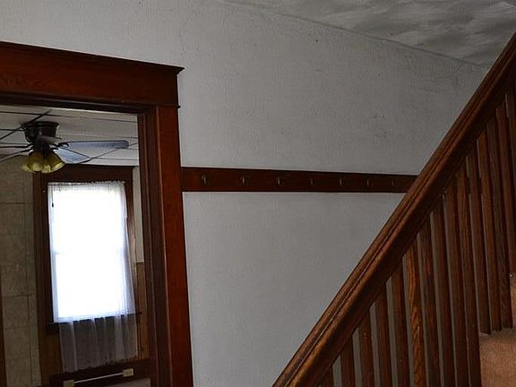 What a large historic 4 square home! Could be an amazingly large home with 5 bedrooms! Currently a 4 bedroom 2 bath home with first floor laundry and master bedroom and bath. This house sits on more than half an acre with a large garage/ workshop that has electric and water running to it! This place just needs the right person with some imagination. Has hardwood under the carpets, and some rooms have the hardwood exposed.