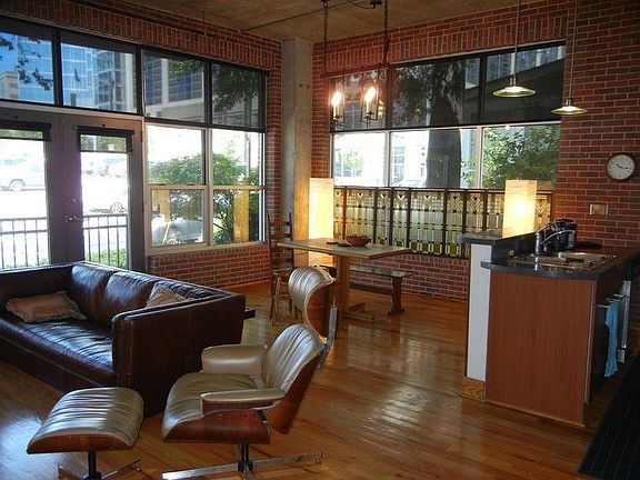 Unique Midtown loft with private balcony. Gleaming hardwoods, sleek stainless open chef's kitchen. Classic brick architecture with amazing amounts of natural light (corner unit). Exposed brick, exposed ductwork and high ceilings make this a true loft. Walk to shopping, eateries, Piedmont Park and cultural destinations. Views of Midtown. Covered, secured parking. Location, Location, Location! Be a part of Intown living while enjoying this large, open space!