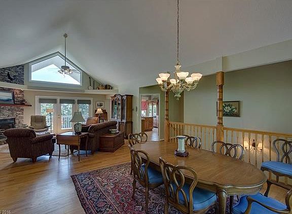 Beautiful, light-filled home with mountain and valley views. One-level living on main or lower-level with views. Downstairs offers great in-law suite or proven rental space. Spacious great room. Soaring cathedral ceilings. Spa-like style master bath. Huge MBD w/ tray ceiling and mountain views. Split bedroom plan. Two offices, bonus room downstairs with kitchenette, a second master and bathroom. Wrap-around deck and two car garage. Adjoining 1-acre lot included for extra privacy.