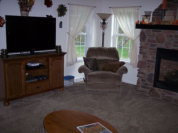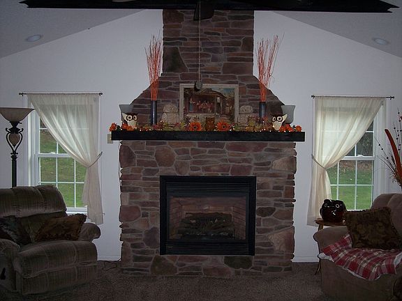 The views are amazing in the valley! This 2001 - 3 bedroom, 2 bath ranch with an open floor plan is situate on 14 private acres. Move right in! House is impeccable. Enjoy the fall evenings sitting in the spacious living room with the gas fireplace to take the chill off, or outside on the covered porch with a mug of hot cider or hot coco! The large basement and 2 car garage are added features.