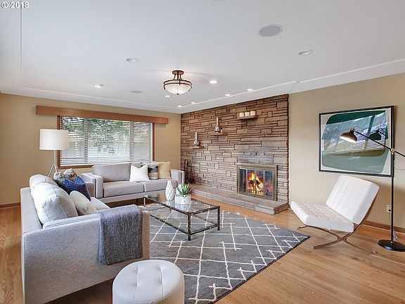 Stunning Mid-Century Modern. Beautifully remodeled. Hardwood floors thru-out. Large living room w/fireplace & stone surround. Formal dining room. Kitchen w/new cabinets,stainless appliances,solid stone counters, tile & eating area. Master suite. Three beds on main. Remodeled bathrooms. Family room w/fireplace & wet-bar. Newer windows, A/C, fenced yard w/ patio. A real gem.