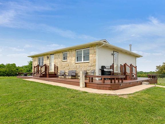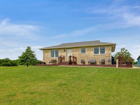 Gorgeous Country Property on 10 acreages! Garage Lover's Will be in "AHHH" of the 4 Car Over sized Garage. Home is All Stone and Vinyl. Great Wrap Around Deck is freshly Stained. Easy access off K-15 between Mulvane and Udall. Home is Move in ready with its updated, dine-in kitchen. Main Floor Living room. Master is over sized with Large Walk-in closet and Private Master Bath. 2nd Bedroom had double closets and Easy access to the 2nd full bathroom. Staircase to the basement has oak steps and hand rail with wrought iron spindles and wood accents. Full Finished walk out basement with Travertine tile, has 3rd full bathroom with Washer and dryer hook-ups. 3rd bedroom was re-purposed for a wonderful Laundry retreat. Rec room and a Large office/Room with a closet. Family room walks out to Back Patio. Wood Burning Stove. Acreage has fenced areas for horses and a lean to with a well near by that needs a pump. Wildlife galore including Turkey, Deer, Quail, Pheasants and more. Quiet and Peaceful Living.