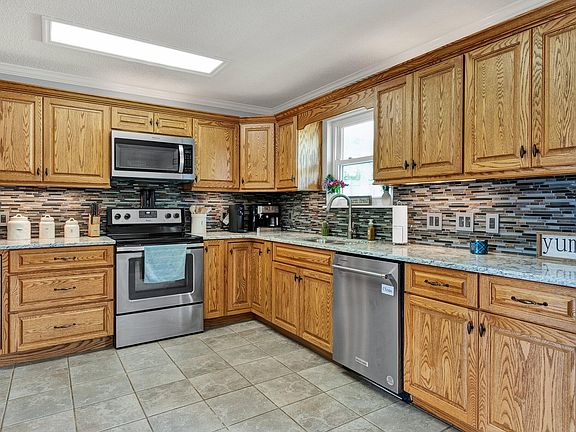 Welcome home to this inviting 4-bedroom, 2.5-bath brick ranch, beautifully situated on a lush 0.59-acre landscaped lot. From gleaming hardwood floors and plush, carpeted bedrooms to stylish tile details, this residence exudes charm and comfort throughout. Gather with loved ones in the spacious living area, highlighted by a cozy fireplace perfect for relaxing evenings. The thoughtfully designed kitchen features updated quartz countertops, while the bathrooms combine functionality and style. The expansive, unfinished basement offers endless possibilities for expansion or abundant storage.