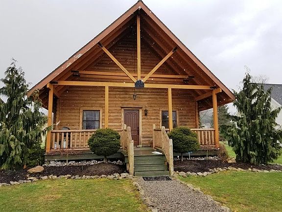 This 3 bedroom log home offers rustic charm in a convenient location just off of Route 66 in in the Fairgrounds. Open concept kitchen & living room area on the main level adjacent to 2 bedrooms & a full bath. The master & additional full are located upstairs. This home offers a covered front porch & surrounded by beautiful landscaping, a flat backyard & an awesome fire pit area for the upcoming spring/summer season. Off street parking available. Must see!!