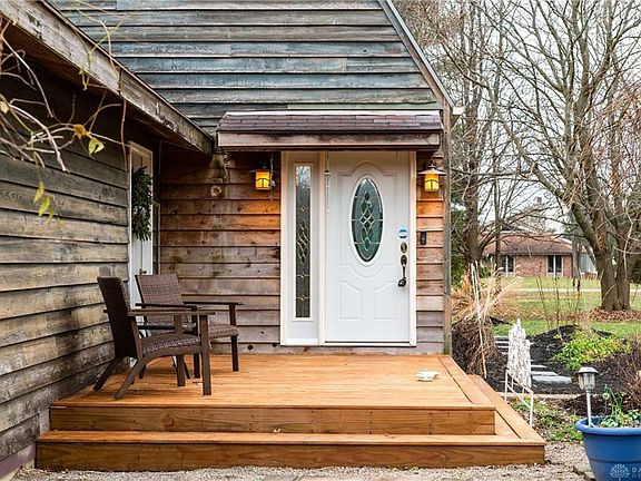 Beautiful grounds with 3 bedroom 2 bath cedar home in Fairborn. Over 1800 finished square footage custom home with only one owner. The property is a double envelope design ready for someone to come in and give their personal touch. The lower level features a kitchen open to the dining room, an enclosed entry and bonus room, and living room with half bath. The upstairs includes 3 bedrooms and an adjacent bonus room for an office, walk-in closet, playroom, whatever suits your needs. The lower level is dry and provides additional potential for extra space. The property has many lovely plantings and a custom built cedar gazebo from a local artist. Home was designed for maximum energy efficiency and utilities are only electric at a level billing of $120 a month.UPDATE: The seller is replacing the garage roof.