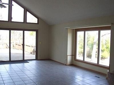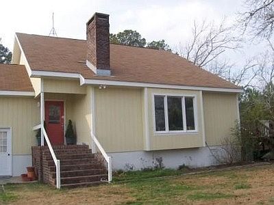 Lovely three bedroom waterfront home. Two story home with two bedrooms and one bath on the second floor. Large living area with tiled floor and fireplace with gas logs. Eat in kitchen with sliding doors leading to large deck. Laundry closet with washer and dryer furnished. One car garage. Large deck on the back of the house leading to private boat dock on Smith Creek. Private balcony from upstairs bedroom.