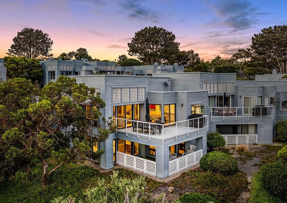 Discover the epitome of coastal elegance in this luxurious townhome nestled within the highly coveted Spindrift community in Del Mar. Revel in awe-inspiring ocean and lagoon views through expansive floor-to-ceiling Milgard windows, which bathe the interiors in natural light and highlight the exquisite European white oak flooring. The main level is designed for seamless living and entertaining, featuring a spacious open floorplan that flows effortlessly onto an oversized terrace which showcases even more stunning views. The chef's dream kitchen, adorned with top-of-the-line appliances and stunning Taj Mahal stone countertops, opens to the inviting family room, creating the perfect backdrop for gatherings and culinary delights. This area also boasts motorized window shades with a remote, offering convenience and enhancing the ambiance for any occasion. On the lower level, find tranquility in two ensuite bedrooms, each offering privacy and direct access to a serene outdoor patio. The attached two-car garage adds convenience, while additional touches inside such as crown and base molding, custom built-ins, and Gold Coast skylights in the third-level loft with built-in shelving elevate the living experience. The loft could also be converted into a 3rd bedroom if desired. The Spindrift community elevates your lifestyle with resort-style amenities, including two pristine pools and a soothing spa nestled amidst lush landscaping. Its prime location provides easy access to freeways, shopping, and the beach, as well as the scenic San Dieguito Lagoon path leading to Del Mar’s pristine beaches and vibrant Village. Explore popular restaurants, unique shops, and more in this charming coastal town. Immerse yourself in the quintessential Del Mar lifestyle with this unparalleled townhome, where coastal elegance and refined luxury converge.
